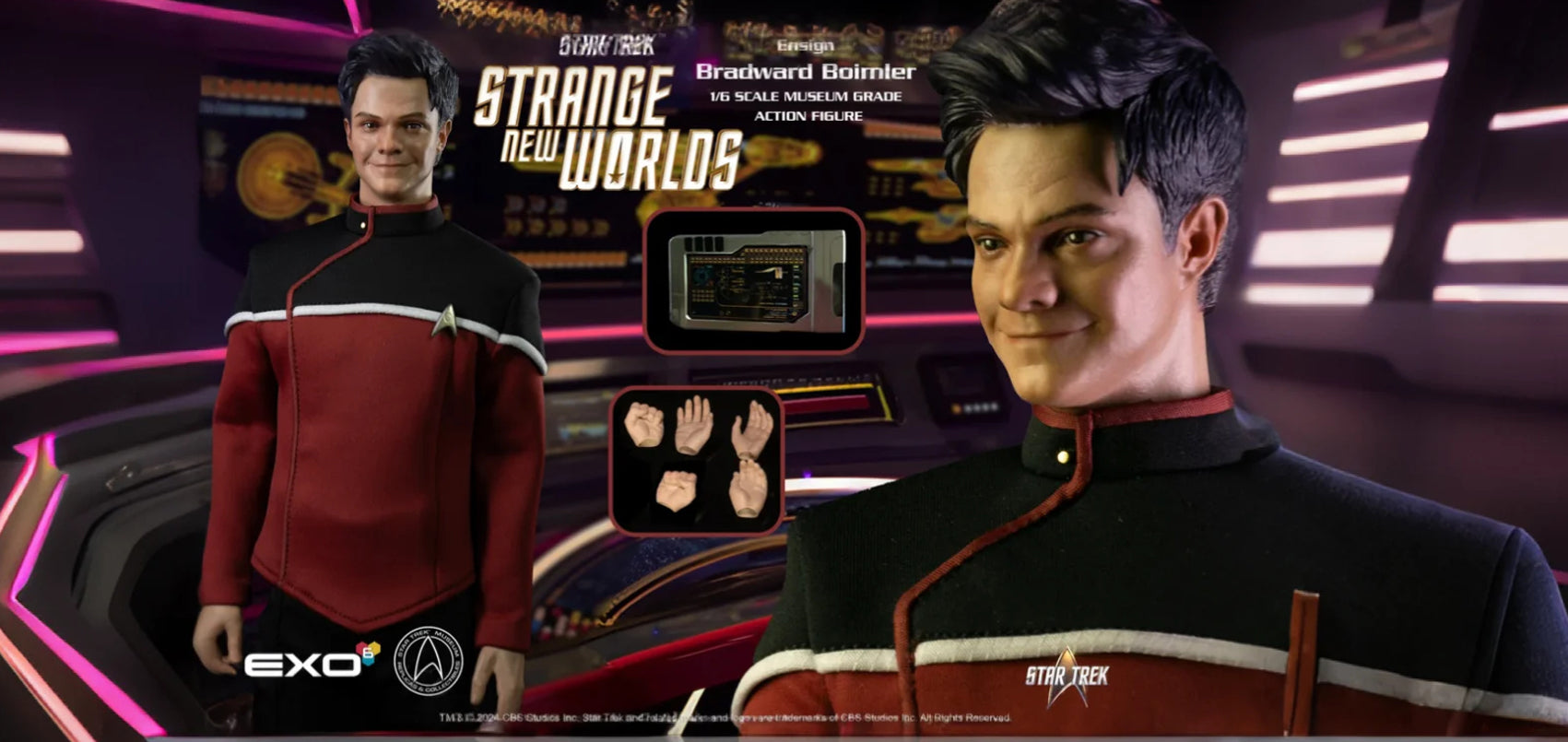 Featuring classic and new favorite characters from the 50-year-old Star Trek Universe, EXO-6 blends fantasy with reality creating a 1:6 replica embodiment of the character and the actor. Engage the star trek collection of high detail and beauty in each piece. Discover the most convincing 1:6 ratio museum grade models of beloved characters.