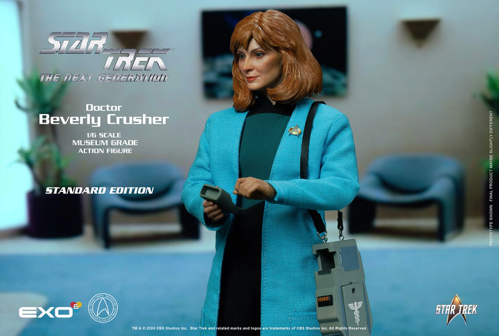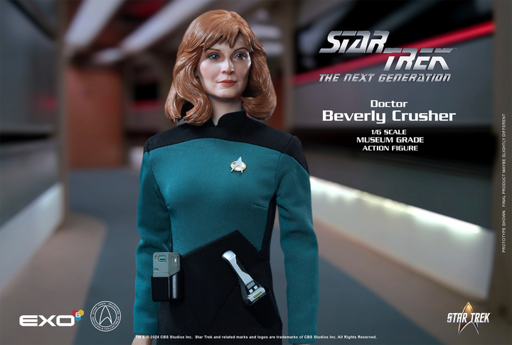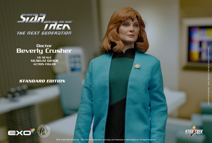 Step into the Star Trek universe with the stunning new EXO-6 one sixth scale Museum Quality figure of Dr. Beverly Crusher, a character who embodies compassion, intellect, and strength. As the chief medical officer aboard the USS Enterprise-D in Star Trek: The Next Generation, Dr. Crusher is not only a brilliant physician but also a vital member of Captain Picard's crew. Her dedication to her patients and her unwavering commitment to the principles of Starfleet, along with the heartfelt performance by Gates McFadden, make her a beloved figure among fans.