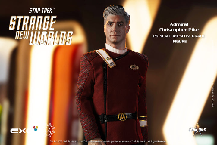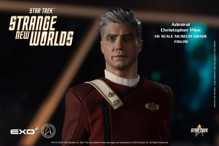 This figure represents a definitive artistic achievement, featuring an all-new, hyper-accurate sculpt of the older Admiral Pike that captures the authentic likeness of Anson Mount.