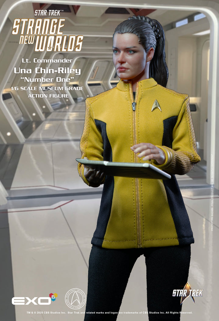 Now, EXO-6 immortalizes this iconic officer in a Museum Grade 1/6 Scale Figure, crafted with obsessive attention to detail. Rebecca Romijn’s striking likeness is captured flawlessly, from her piercing gaze to the crisp lines of her Strange New Worlds-era uniform. With 36 points of articulation, pose Una mid-stride on an away mission or standing resolute on the Enterprise bridge. The figure includes era-authentic accessories: a phaser ready for combat, a communicator for hailing the ship, a tricorder for scanning alien terrain, and a PADD brimming with Starfleet protocols. A sleek display base—engineered for dynamic posing—completes the set, ensuring she commands attention in any collection.
