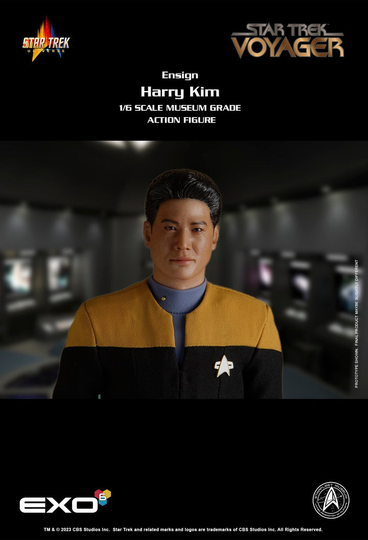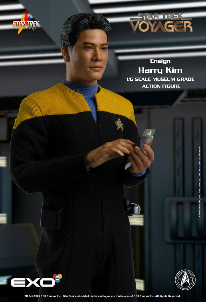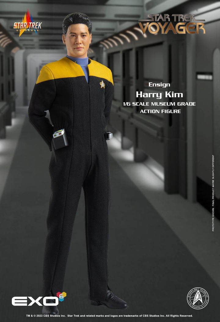 This 1:6-scale figure re-creates this iconic character in exquisite 1:6 detail. Standing approximately 12 inches tall, every element, from his 24th century jumpsuit to his Starfleet boots, is authentically reproduced. The original portrait sculpt of Garrett Wang as Harry Kim has an authentic, hand-painted likeness.